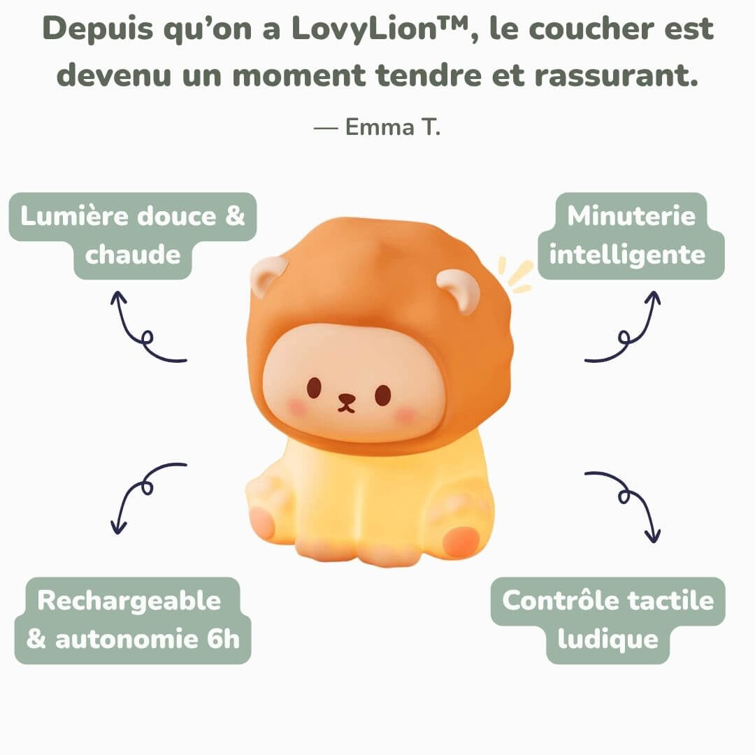 Une veilleuse enfant lion rassurante, ludique et facile à utiliser ? LovyLion™ est le doudou lumineux idéal pour veiller sur les nuits de votre trésor 🦁💤